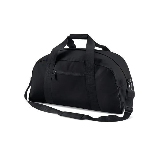 100% poliestere 600d. Borsone con tracolla regolabile e piccola tasca frontale con zip. Etichetta removibile. Dimensioni: 60 x 31 x 27 cm, capacita': 48 litri, area stampabile: 18 x 18 cm.