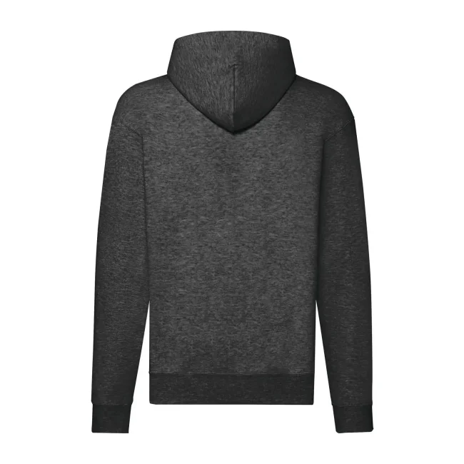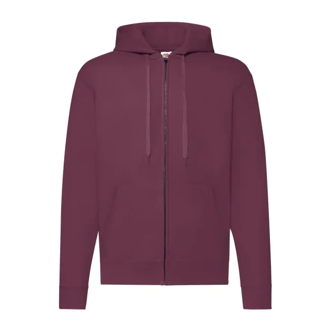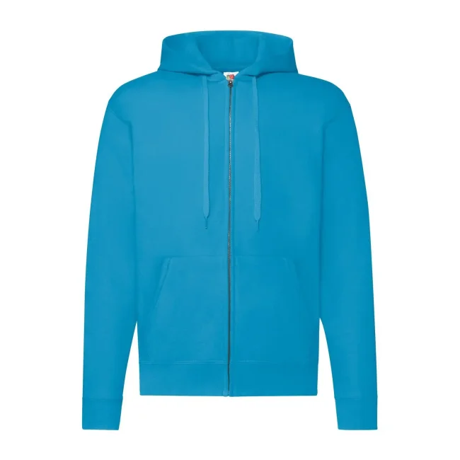 80% cotone, 20% poliestere. Felpa con maniche set-in, cappuccio con cordoncino in tinta, tasca a marsupio, cerniera nascosta per favorire la stampa, felpata internamente. Struttura con busto tubolare. Etichetta removibile. (Col. 30/94: 260 g/m²).
