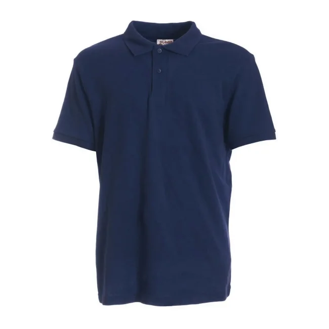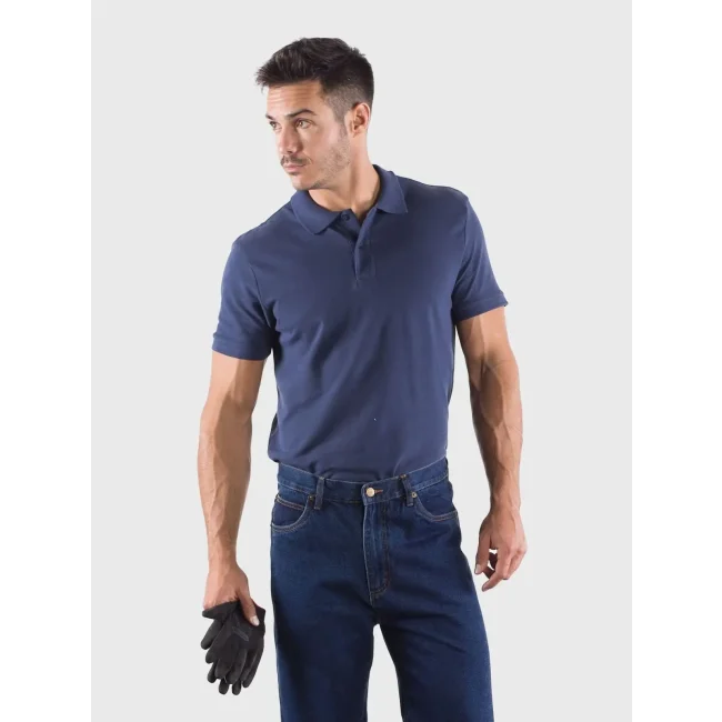 100% cotone piqué. Polo a maniche corte set-in, 2 bottoni tono su tono, nastro di rinforzo al collo, maniche con costina, busto dritto senza spacchetti, struttura con cuciture laterali. Col. GY: 85% cot. 15% vis.
