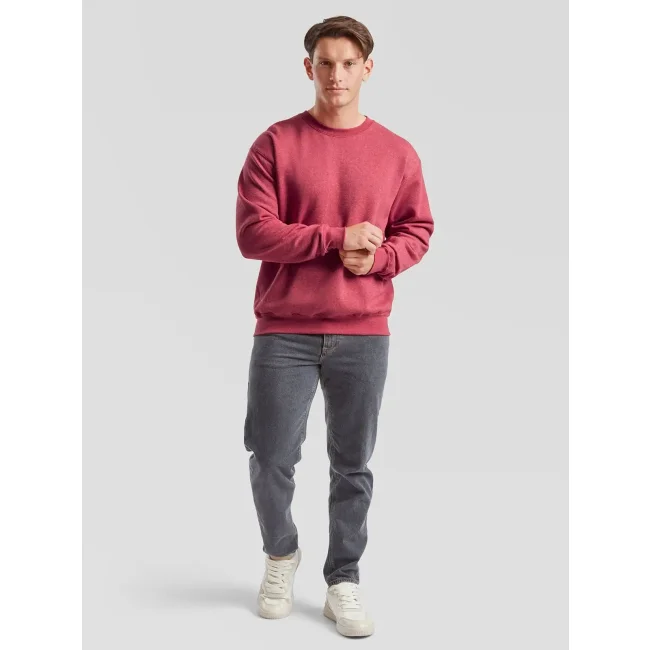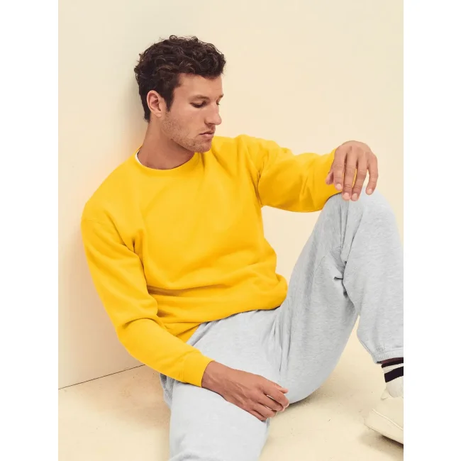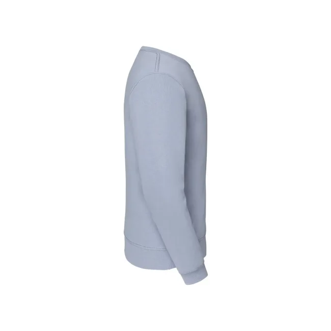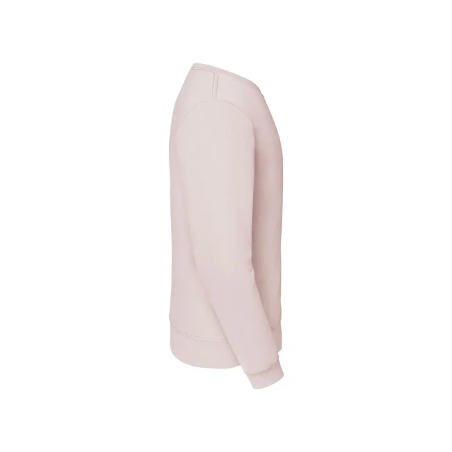 80% cotone, 20% poliestere. Felpa con maniche set-in, fettuccia da spalla a spalla in jersey, felpata internamente, struttura con busto tubolare. Collo, polsini e orlo inferiore in costina cotone/lycra. Etichetta removibile. (Col. 30/94: 260 g/m²).