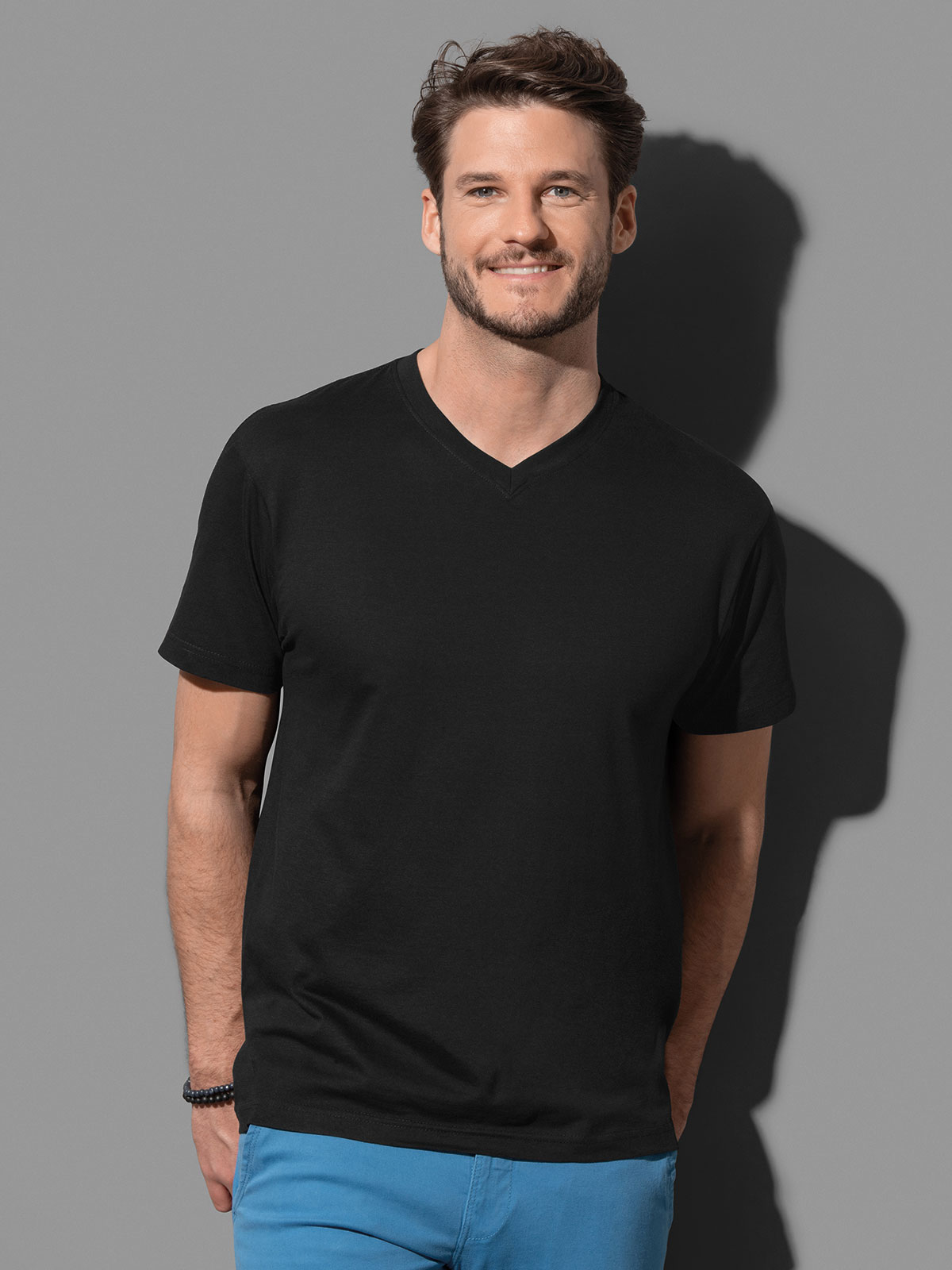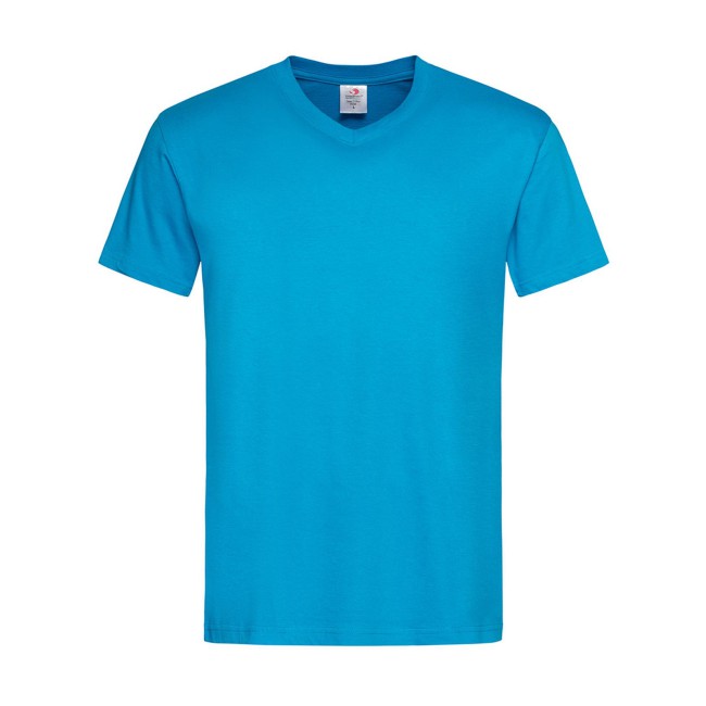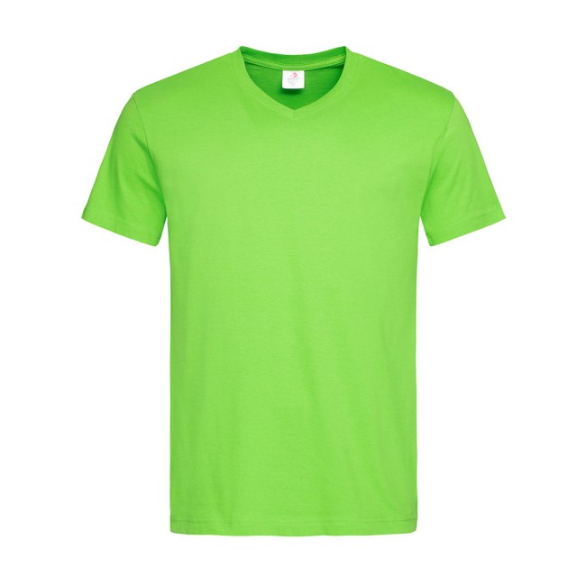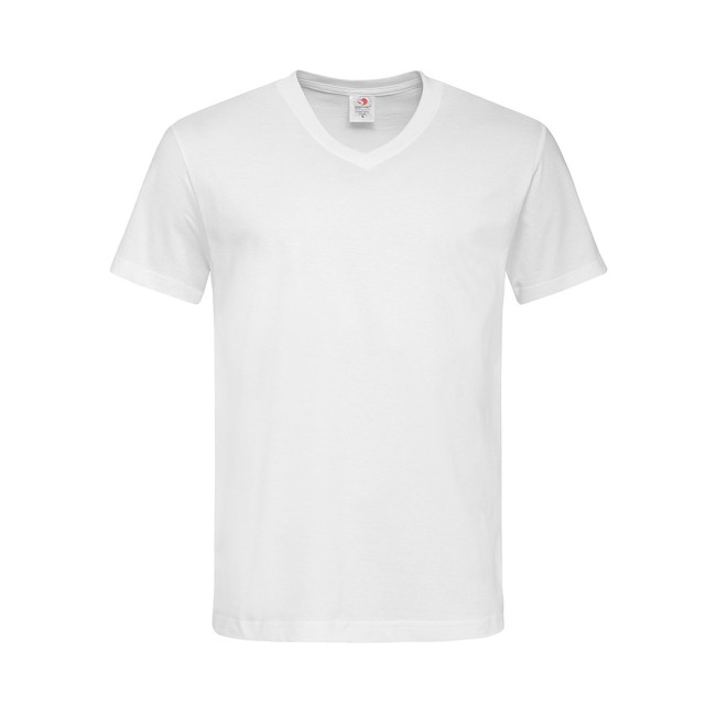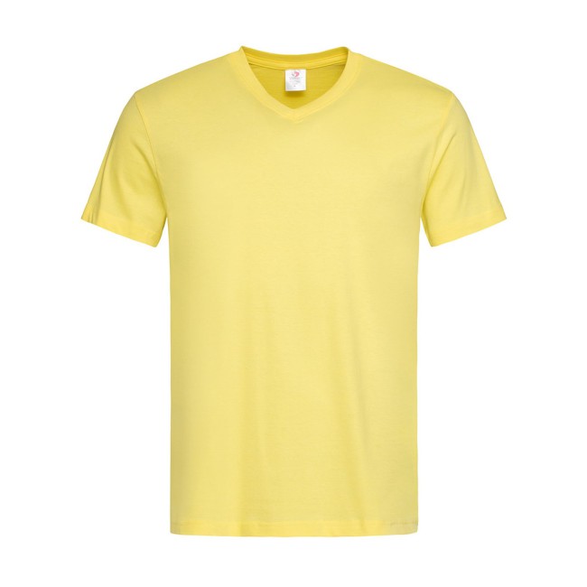 100% cotone single jersey. T-shirt manica corta, set-in, scollo a V. Struttura con busto tubolare, cucitura a doppio ago su collo, maniche e vita, nastro di rinforzo alle spalle. GYH: 85% cot. 15% visc.