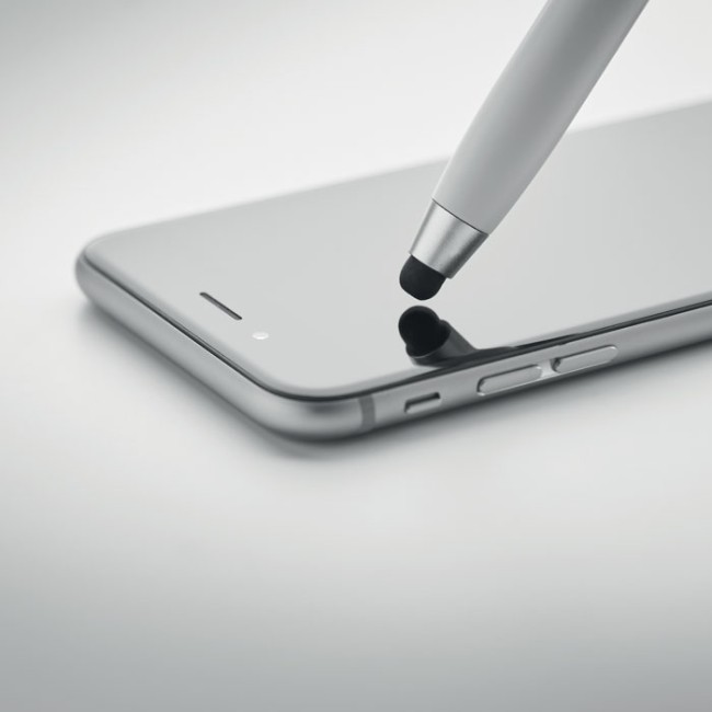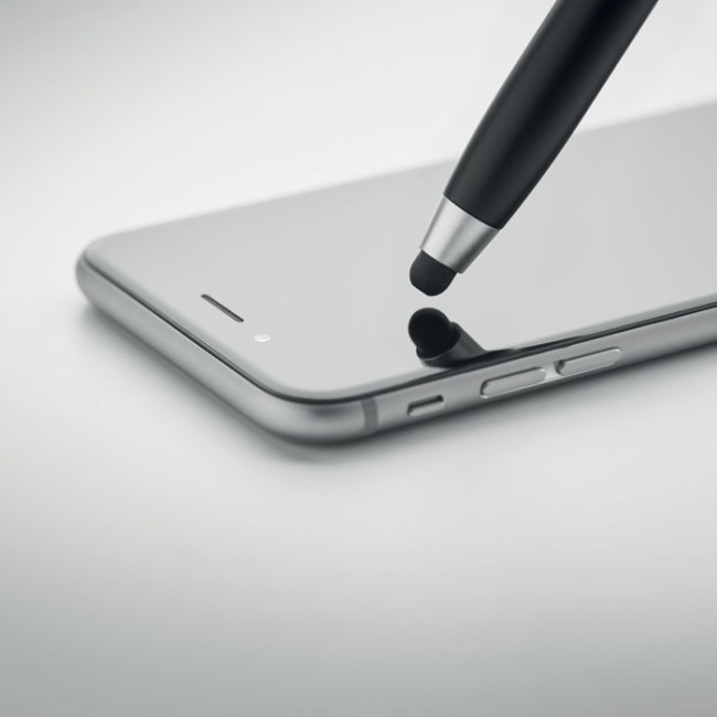 Penna a sfera a rotazione con stilo in ABS. Dispone di un kit per la pulizia degli auricolari TWS: pinza metallica, spugna e pennello. Inchiostro blu.