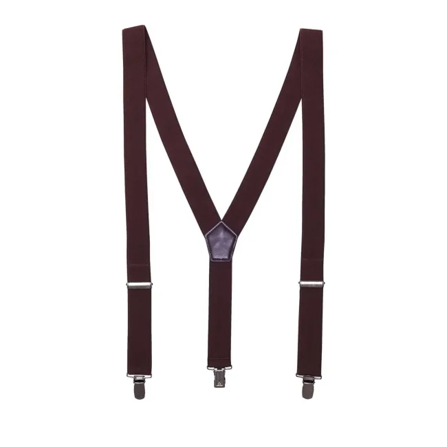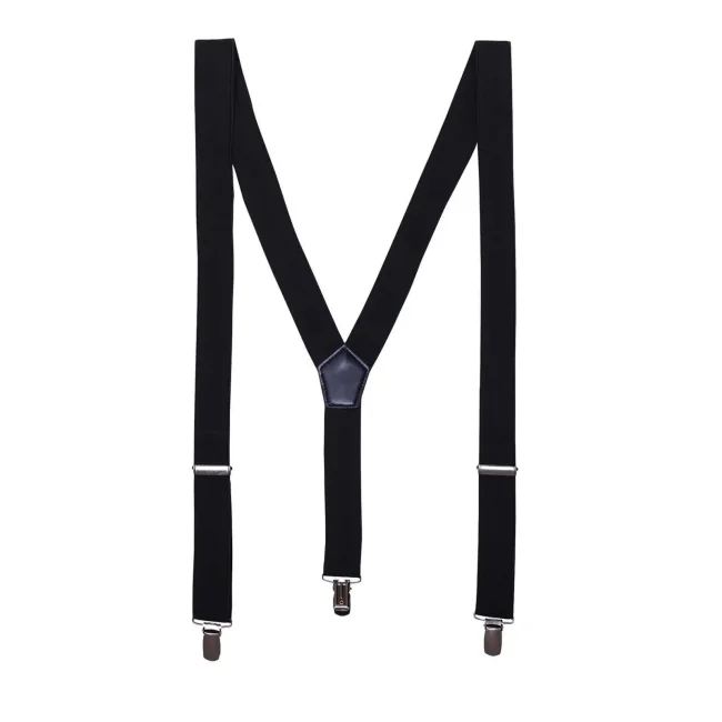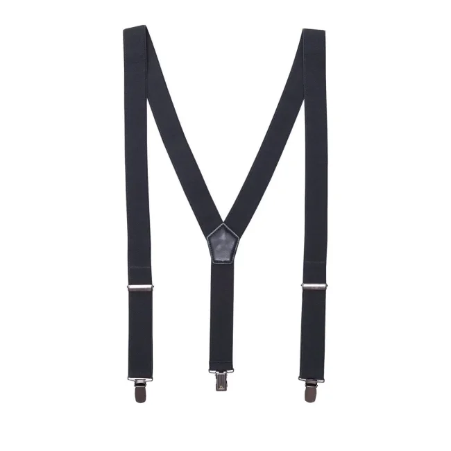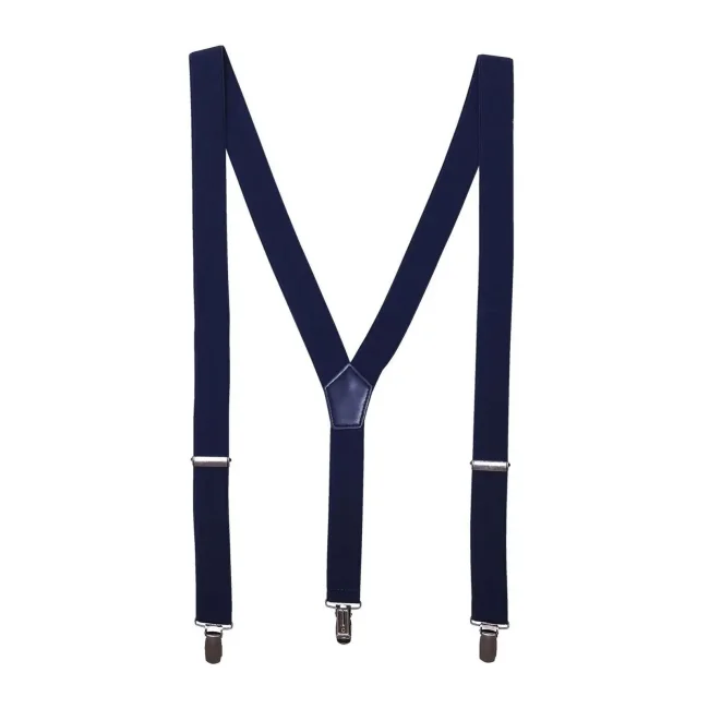 70% cotone, 30% poliestere. Bretelle per pantaloni di 3 cm di larghezza in materiale elasticizzato. Due ganci di metallo anti-scivolo per l'attacco sul pantalone sul davanti e uno dietro. Fibbie regolabili di metallo. Taglia unica.