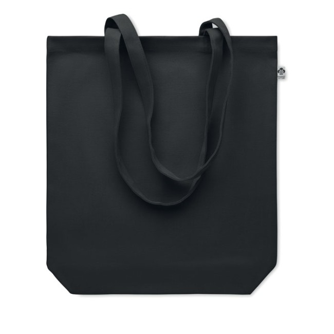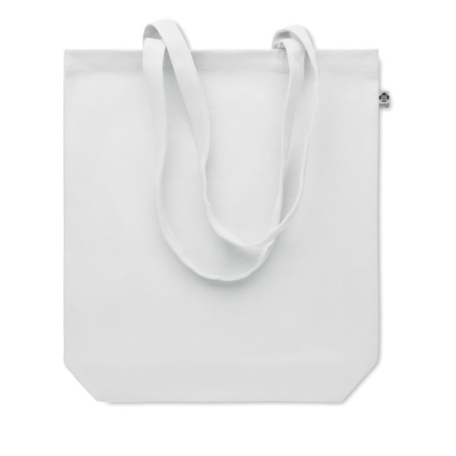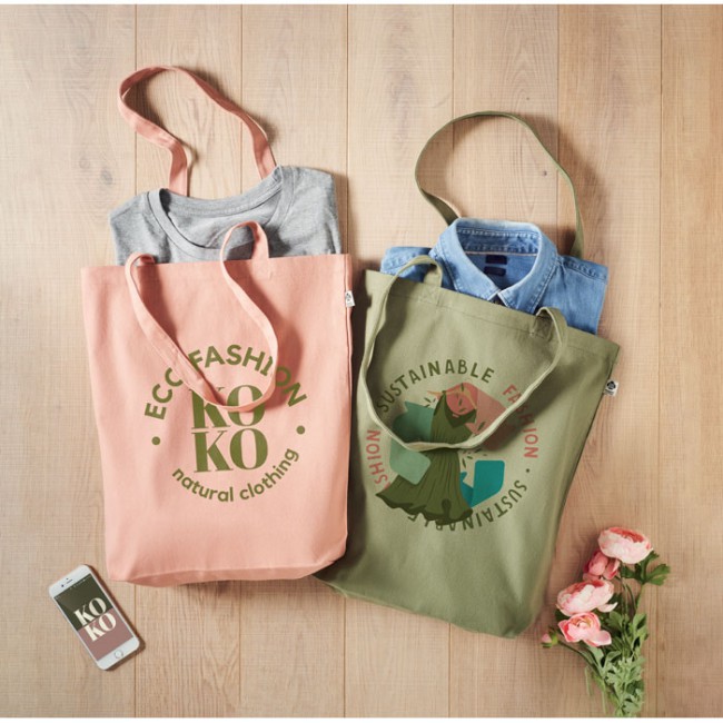 Shopper in tela biologica con manici lunghi. 270 gr/m². Realizzata in cotone biologico prodotto secondo un'etichetta certificata. Questo prodotto è certificato OEKO-TEX® STANDARD 100.