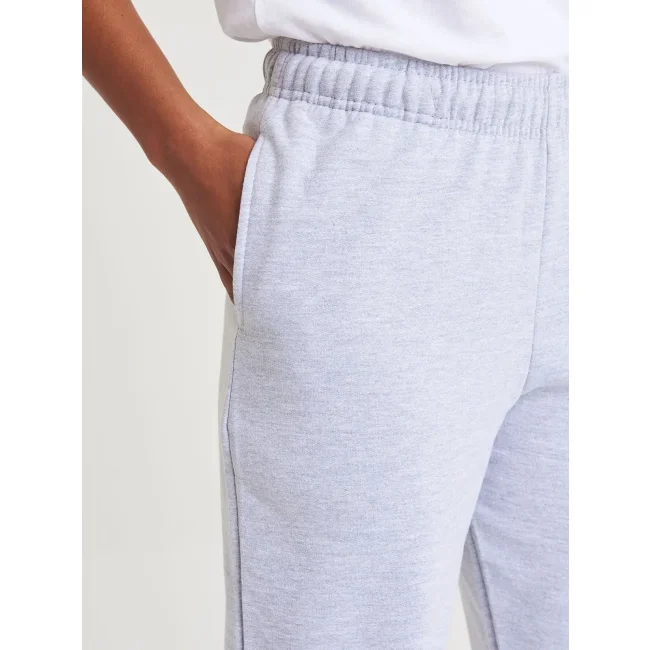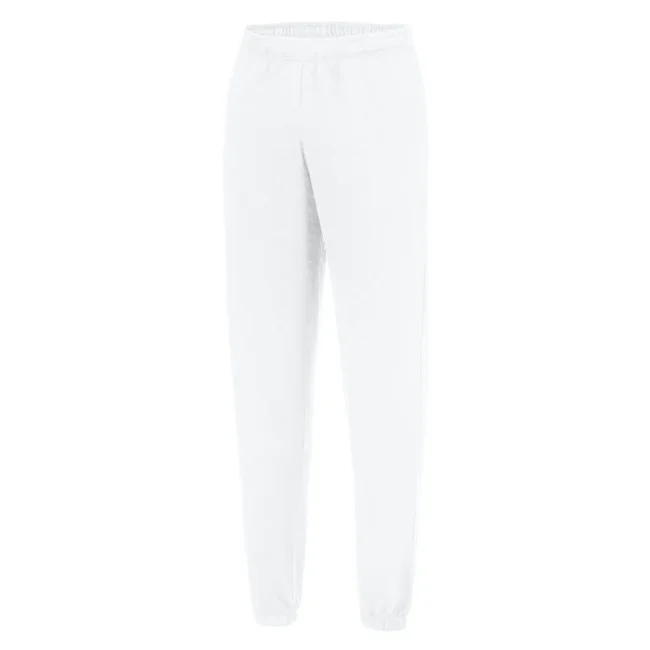 80% cotone ringspun, 20% poliestere. Pantaloni felpati internamente con polsini, cordini interni, tasche laterali, etichetta strappabile. (Col. HGR: 75% cot. 25% pol.)