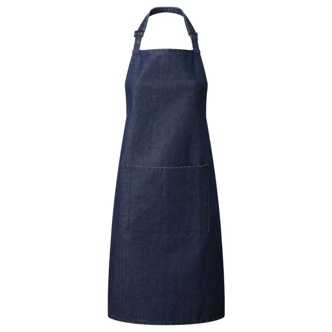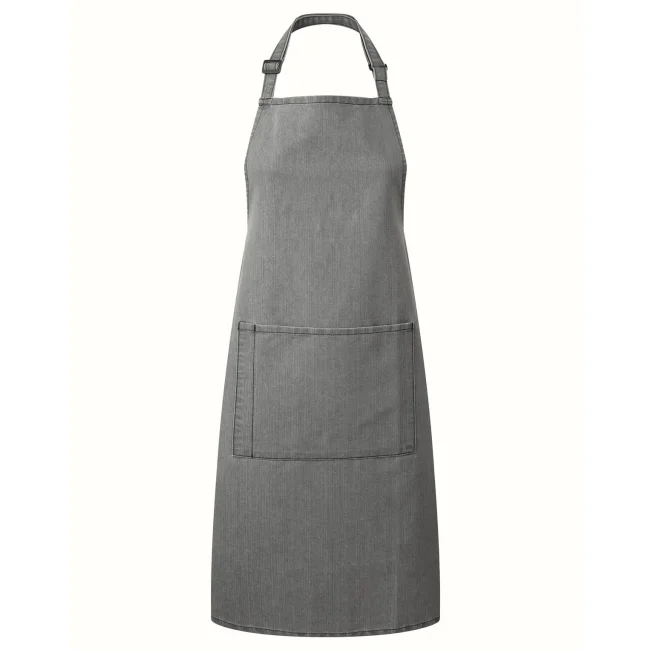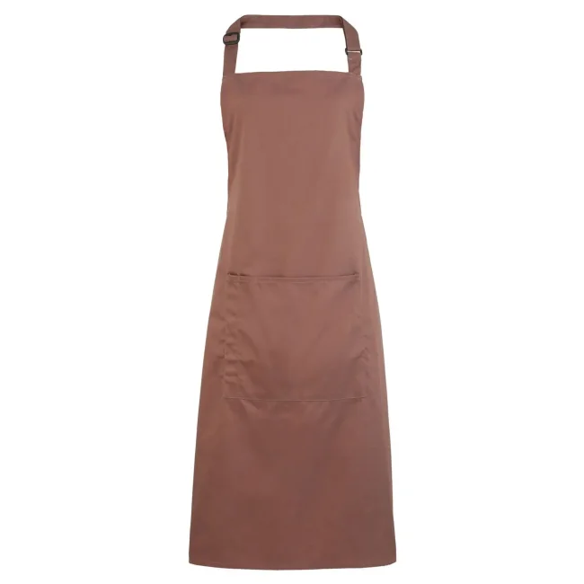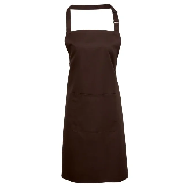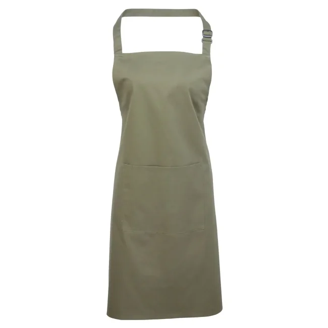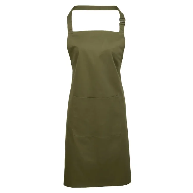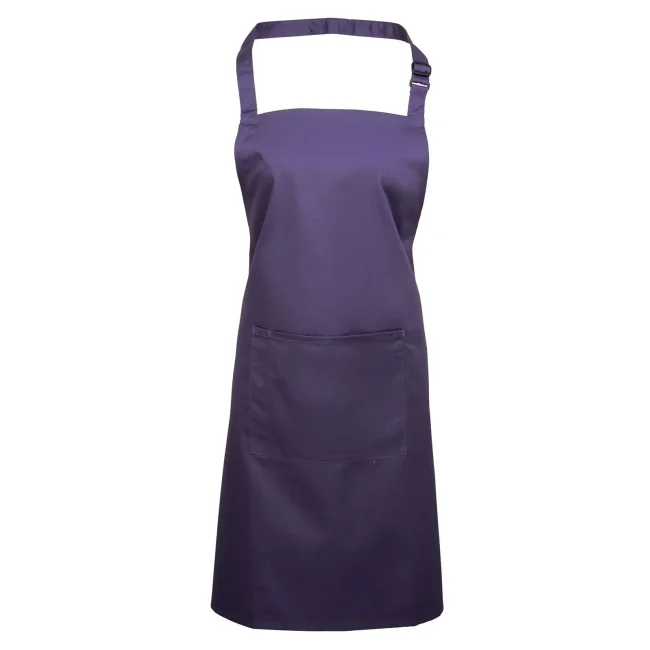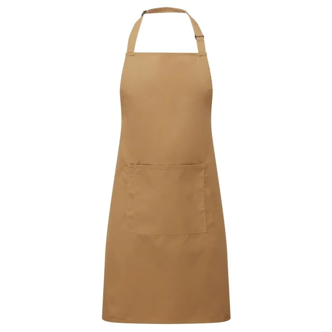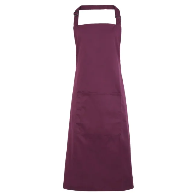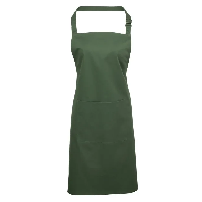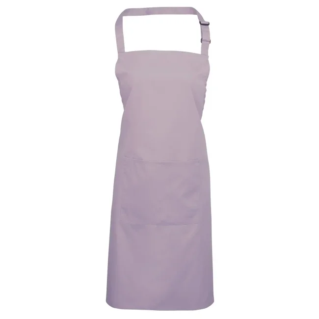 65% poliestere, 35% cotone twill. Grembiule con pettorina, tasca centrale e una tasca per penna separata, laccio al collo regolabile con fibbia. Allacciatura posteriore con lacci di 90 cm. Lavabile a 60°C in lavatrice domestica e 85°C in lavatrice industriale.