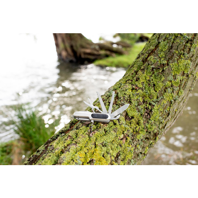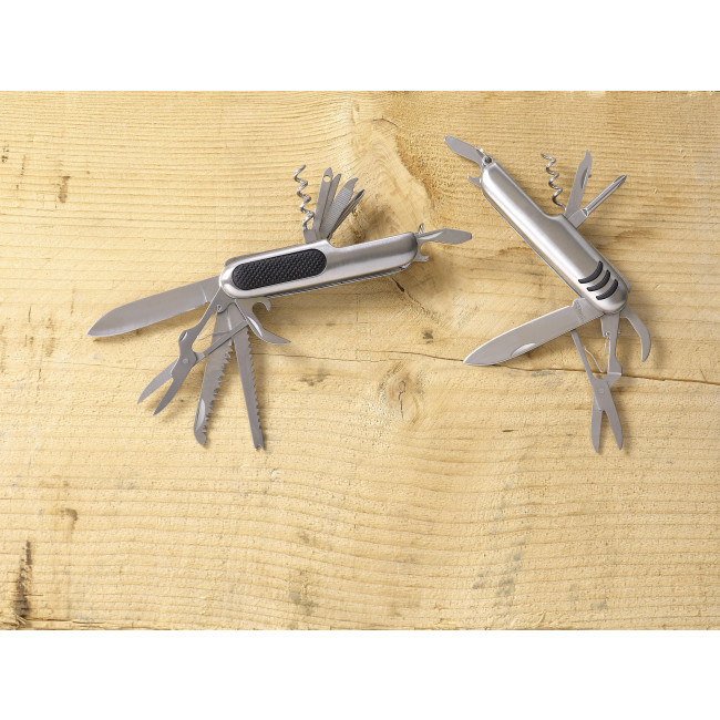 Coltellino tascabile in acciaio inox, 11 funzioni, composto da apribottiglie, cavatappi, cacciavite a croce, due lame, forbici, tre coltelli e fascette