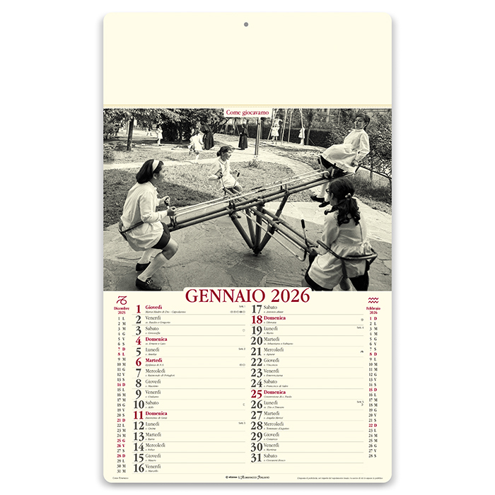 calendario: cm 31x52.5 ca testata: cm 31x10.5 ca