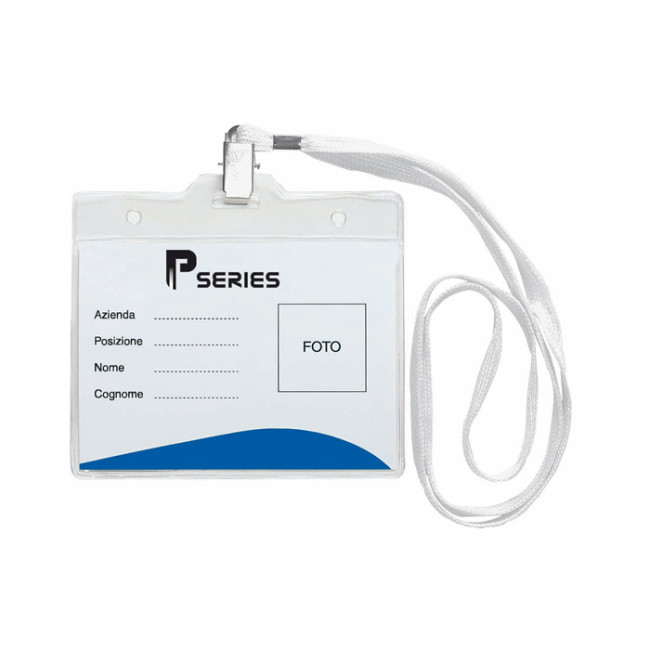portabadge con nastrino e clip nichelata cartoncino neutro incluso tecnica di stampa consigliata: serigrafica