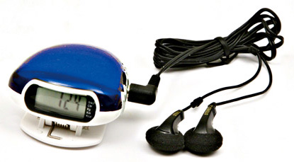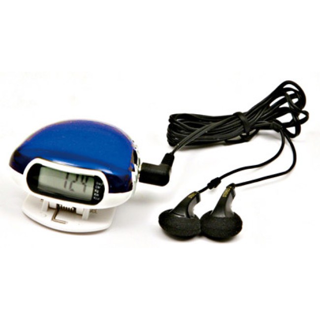 Contapassi programmabile: indicando la lunghezza del passo ed il peso conteggier? il numero dei passi, la distanza percorsa e le calorie bruciate. Comprende radio orologio con funzione "count-down" e auricolari. Astuccio di confezione bianco.