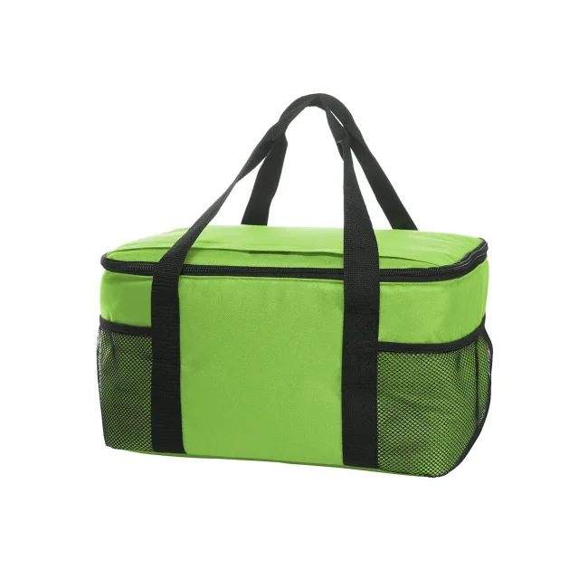 100% poliestere 600d. Borsa frigo dotata di ampio scomparto principale con chiusura lampo bidirezionale, scomparti laterali a rete, scomparto sul lato superiore. Dimensioni: 37 x 20 x 27 cm, capacita': 18 litri, area di stampa: 22 x 15 cm.