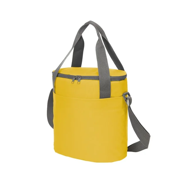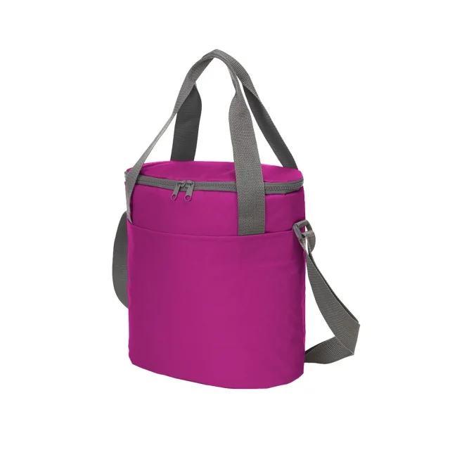 100% poliestere 600d. Borsa frigo dotata di ampio scomparto principale con chiusura lampo bidirezionale, tasca anteriore portabottiglia, tracolla di lunghezza regolabile. Dimensioni: 30 x 31 x 15 cm, capacita': 10 litri, area di stampa: 21 x 15 cm.