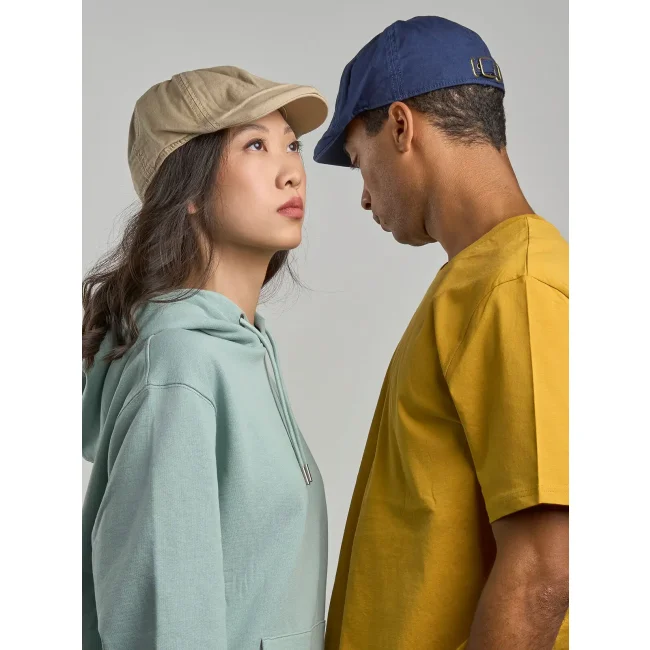 Coppola Gatsby Street-S realizzata in cotone canvas organico al 100%, presenta una struttura completamente chiusa e una fibbia in metallo per una vestibilità sicura. L'etichetta removibile aggiunge un tocco di eleganza e praticità.