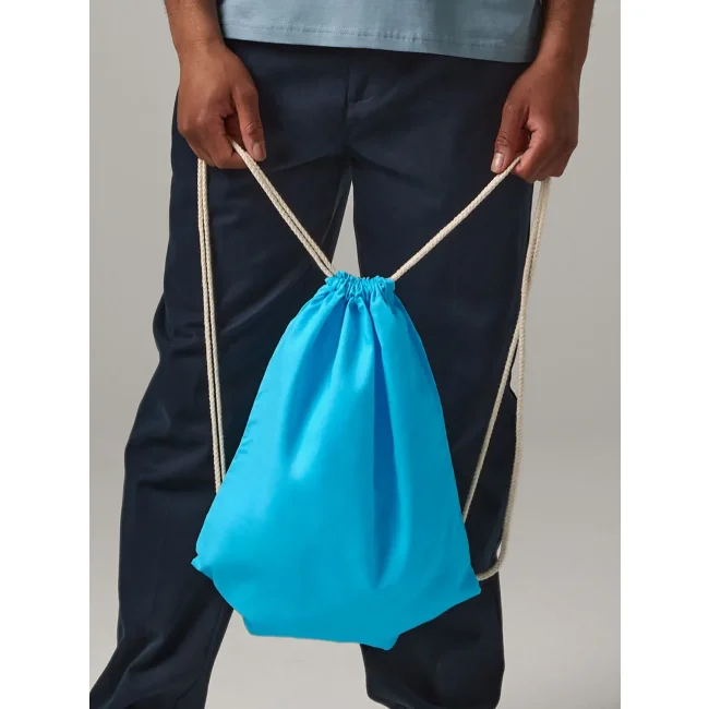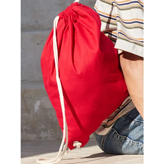 100% cotone. Sacca con cordoncino in contrasto. Etichetta removibile. Dimensioni: 36 x 46 cm, capacita' 12 litri, area stampabile 30 x 32 cm.
