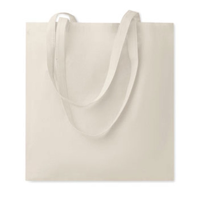 Shopper in cotone da 180gr. Manici lunghi. Questo prodotto è certificato OEKO-TEX® STANDARD 100.