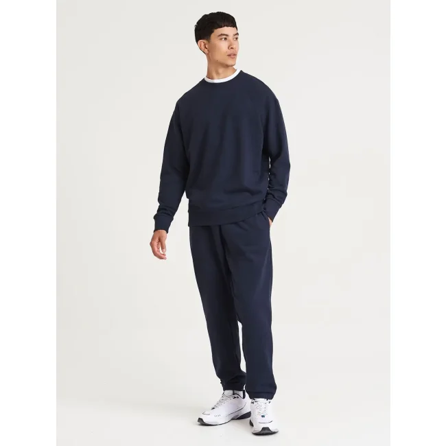 70% cotone riciclato, 30% poliestere riciclato. Pantaloni unisex in felpa, morbidi sia al tatto che nella vestibilità. Tasche laterali, polsini a costine. Abbinabili alla felpa girocollo EA032 e felpa cappuccio EA042.