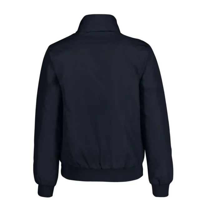 100% poliestere pongee. Giacca antivento e idrorepellente, parte interna in poliestere taffetà, impermeabilita' 5000 mm. Cappuccio a scomparsa ergonomico e regolabile, maniche e orlo inferiore a coste, colletto rialzato, doppie cuciture sulle spalle, 2 tasche frontali con cerniera.