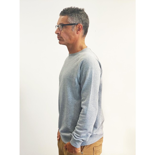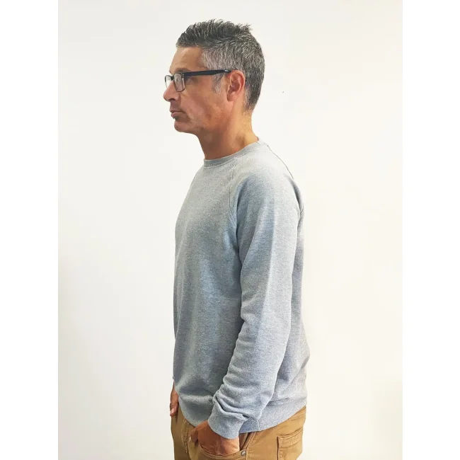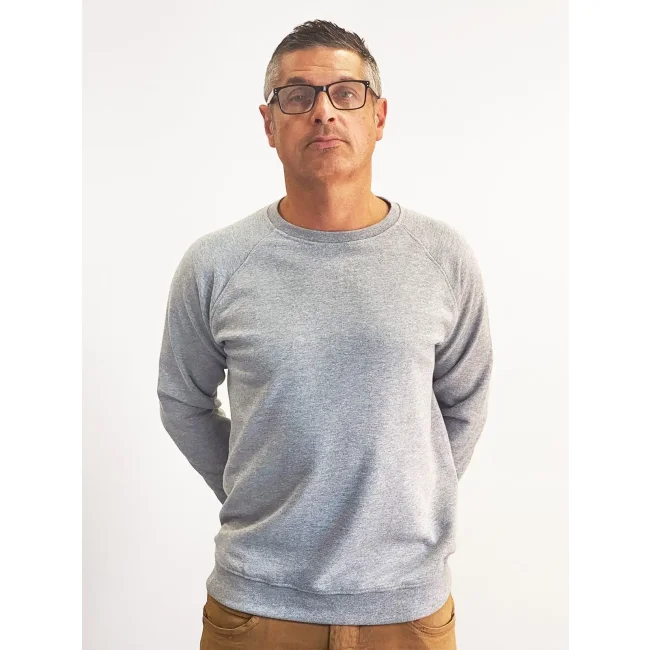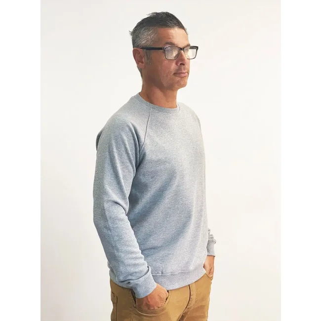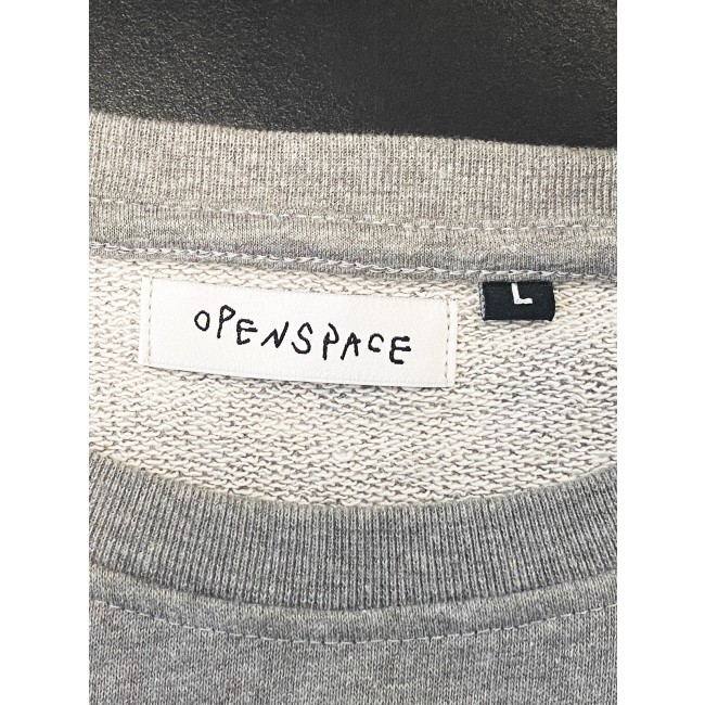 90% cotone, 10% poliestere. Felpa girocollo. French Terry. Manica raglan, fashion fit, struttura tubolare, collo con etichetta OPENSPACE e etichetta taglia, etichetta composizione, taglia e made in sul fianco. Non felpata internamente.
