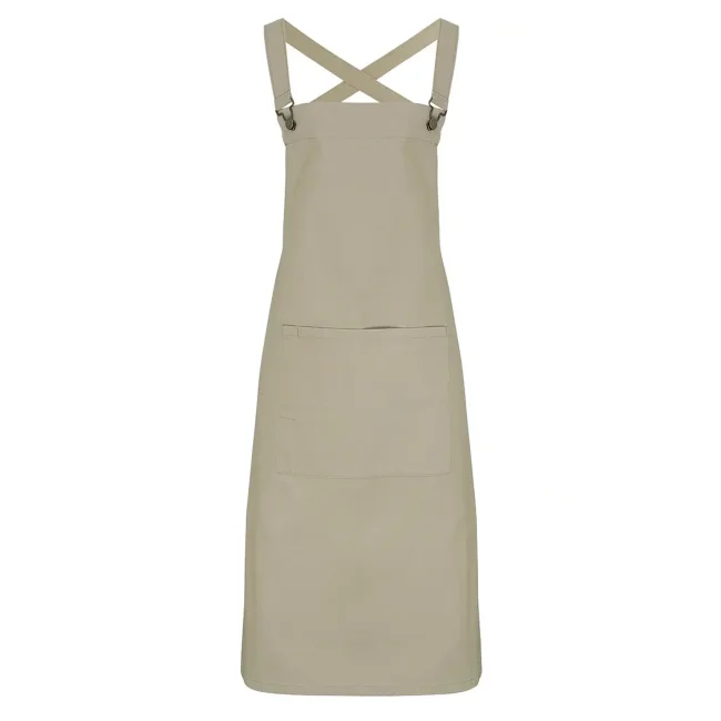 100% cotone canvas. Grembiule, con cinturini in tessuto, tasca anteriore centrale con slot per penna incorporato, chiusura con fibbia, occhielli metallici. Bretelle intercambiabili (PR119).