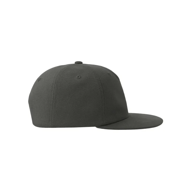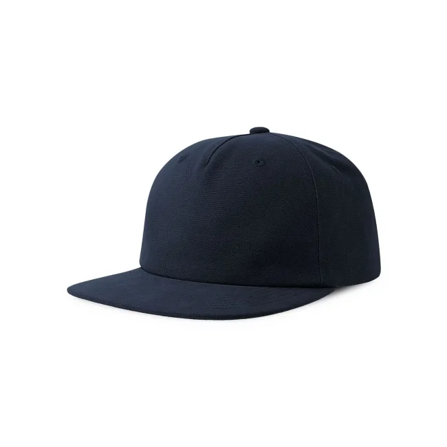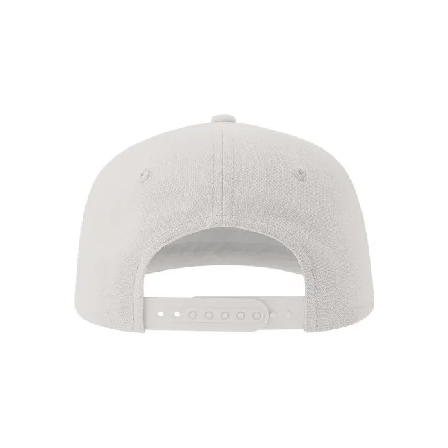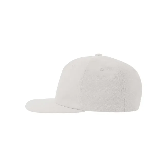 100% cotone canvas organico. Cappello a 5 pannelli in cotone organico e riciclato, con visiera piatta e chiusura snapback in pvc, etichetta removibile.
