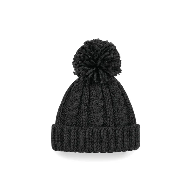 Cuffia Cable Knit Melange realizzata in 100% acrilico Soft-Touch, con un design a trecce in filato pesante e pom-pom abbinato. La fascia termica in tessuto Suprafleece garantisce calore e comfort, mentre il modello con risvolto offre un tocco di stile.