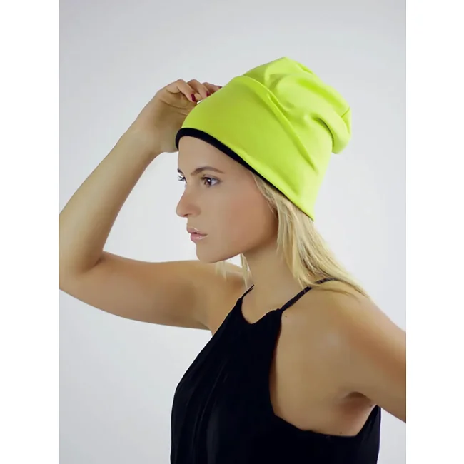 Cuffia Extreme composta da 73% poliestere, 23% cotone e 4% elastane. Presenta un design reversibile con doppio strato e 6 cuciture di chiusura. L'etichetta facilmente rimovibile consente la personalizzazione, rendendola un accessorio versatile e pratico.