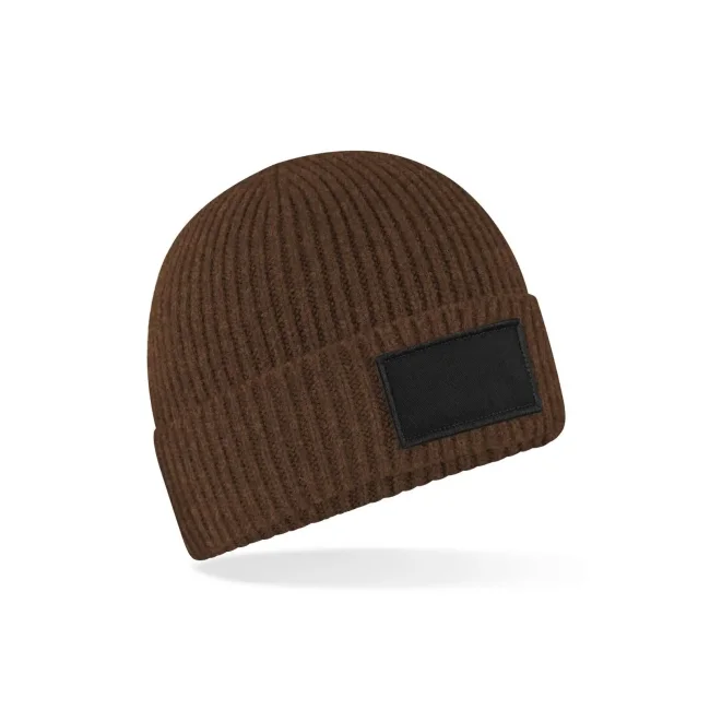 La cuffia Fashion Patch è realizzata con una miscela di 52% poliestere riciclato, 47% acrilico e 1% elastan. Il design a costine e la toppa in twill di cotone offrono un tocco distintivo, mentre il risvolto garantisce comfort e stile. L'etichetta removibile facilita il rebranding.