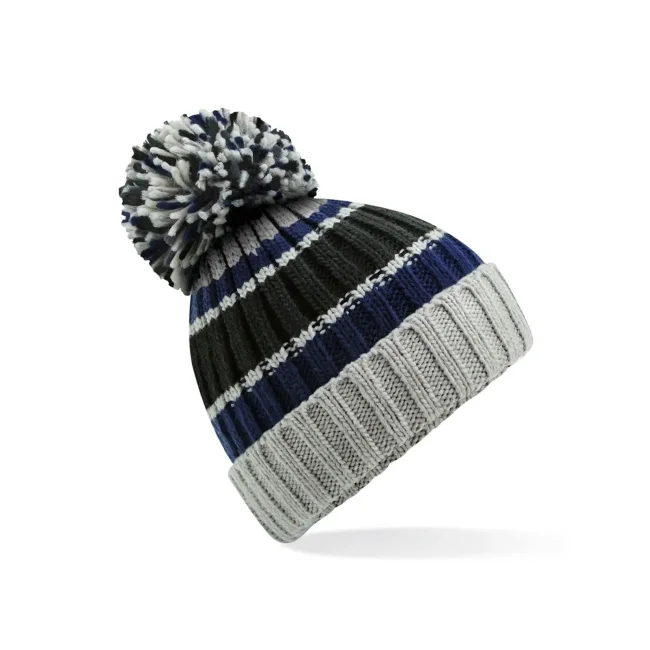 La cuffia Hygge Striped Beanie è realizzata in 100% acrilico Soft-Spun, con fodera in 100% finto shearling. Il design a coste con motivo a strisce a tre colori e pom pom oversize offre una rifinitura ottimale. L'etichetta removibile TearAway facilita il rebranding, rendendola una scelta distintiva.