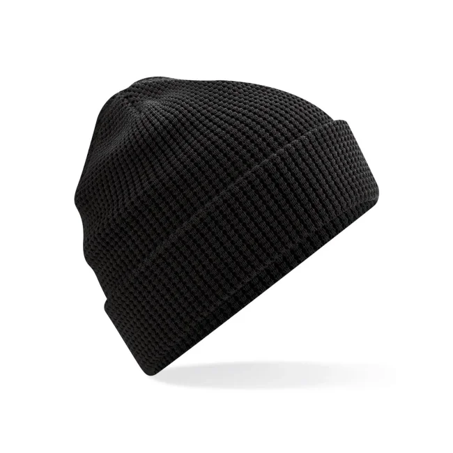 Cuffia Organic Cotton Waffle in 100% cotone organico, caratterizzata da una lavorazione a nido d'ape. Il modello a maglia doppia offre un tessuto leggero e traspirante, con un risvolto per una rifinitura ottimale. Include un'etichetta removibile TearAway per un facile rebranding e è certificata OCS - CU811033.
