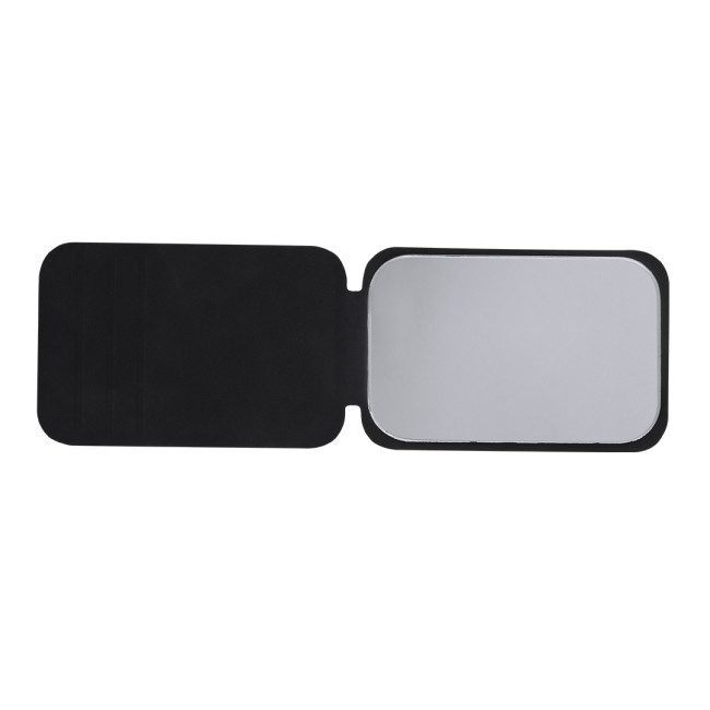 Specchio pieghevole con copertine in morbido PU. Progettato con supporto regolabile in tre posizioni. Con ingrandimento 1x.