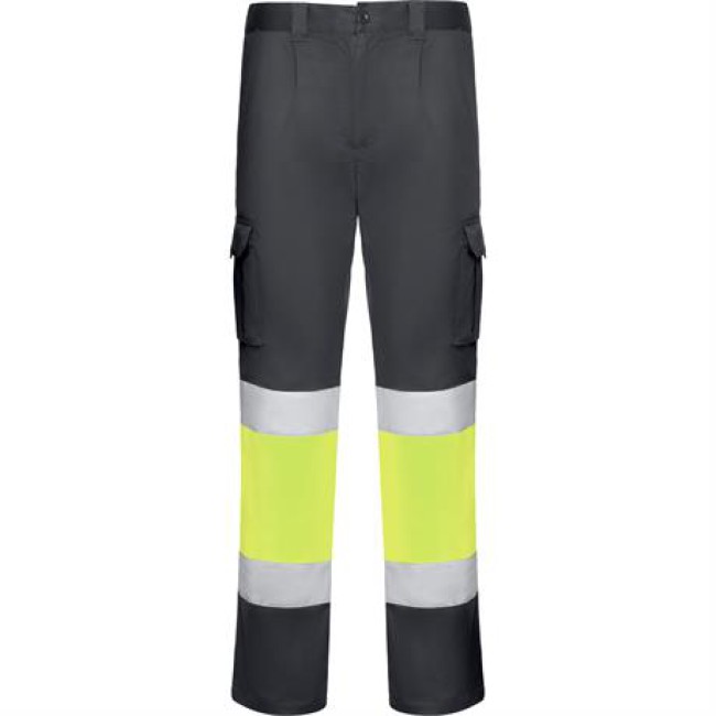 Pantalone lungo multitasche alta visibilità.· Tessuto confortevole e flessibile.· Vita elasticizzata regolabile sul retro.· Due tasche anteriori.· Due tasche posteriori con patta e chiusura in velcro.· Due tasche laterali a soffietto con patella e chiusura in velcro.· Bicolore e nastri riflettenti.