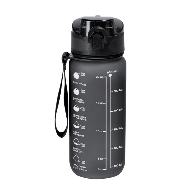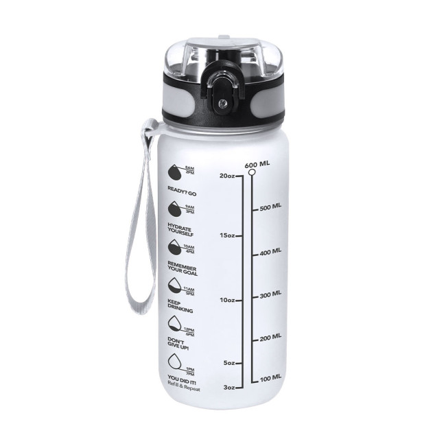Borraccia da 750 ml in RPET resistente con finitura opaca traslucida. Coperchio ingegnoso con molla, facile da aprire premendo il pulsante frontale, con chiusura di sicurezza. Tappo a vite per sigillatura ottimale e manico coordinato per un trasporto comodo. BPA-free.