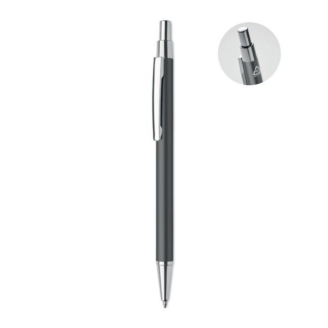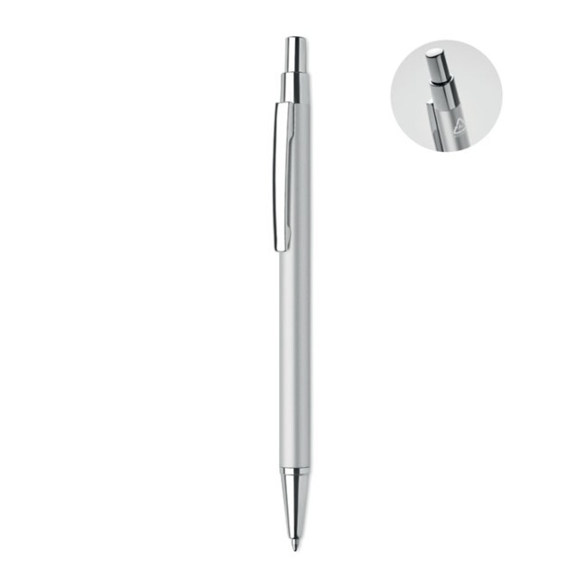 Penna a sfera a pulsante in alluminio riciclato. Inchiostro blu. Un classico essenziale per l'ufficio con un tocco sostenibile. Il look in alluminio dona a questa penna un aspetto più premium.