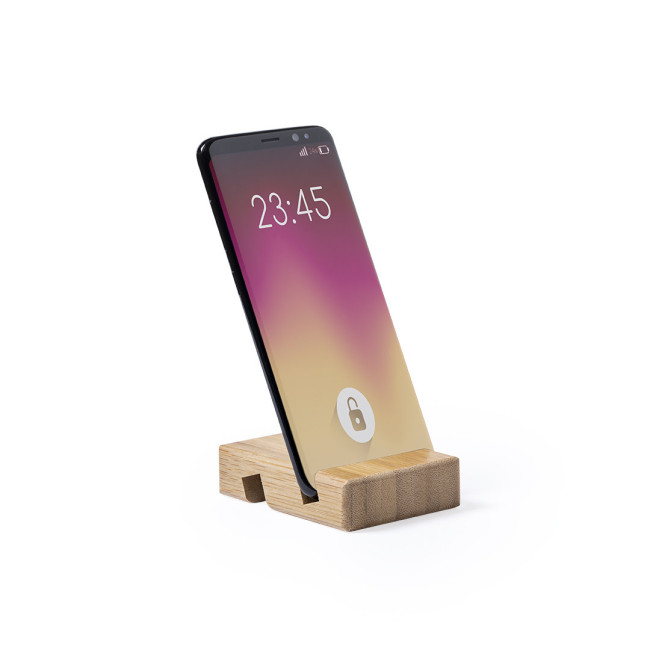 Supporto per dispositivi mobili della linea Nature,adatto a smartphone e tablet. Realizzato in robusto bambù con finitura laccata, con una fessura/supporto su entrambi i lati.