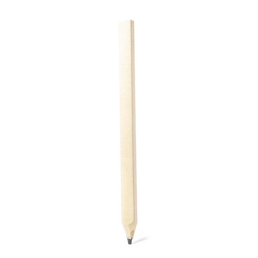 Classica matita da falegname in legno naturale di forma rettangolare. Mina nera e punta non affilata.
