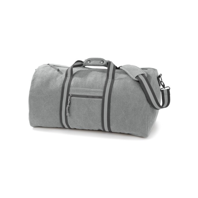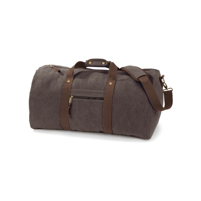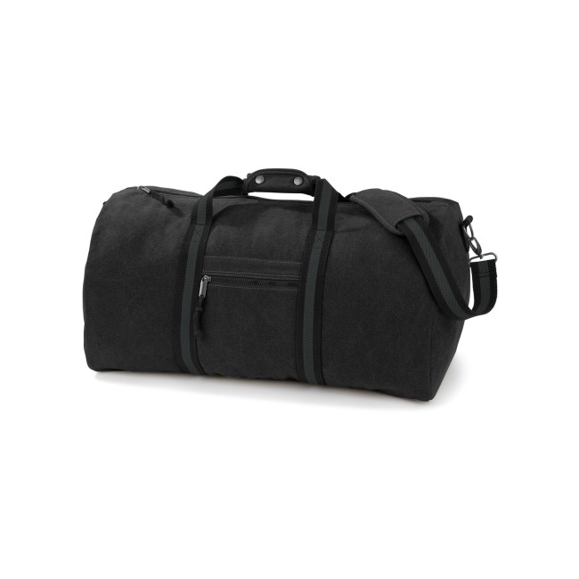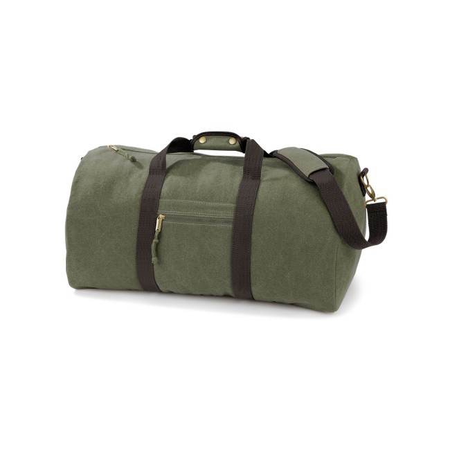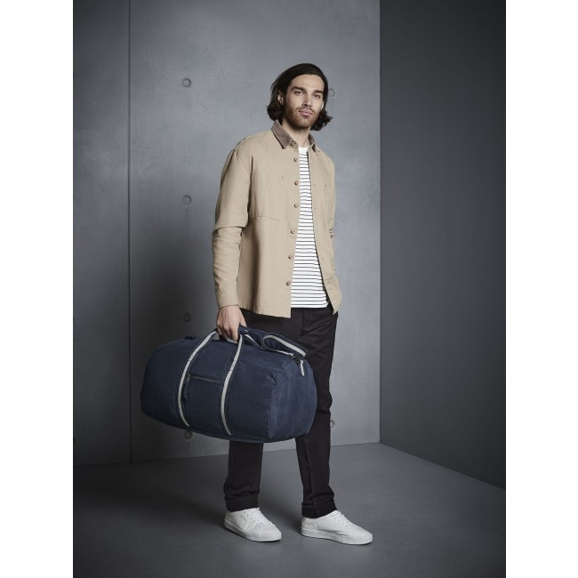 100% cotone Canvas. Borsone tubolare con lunga tracolla regolabile e staccabile, piccola tasca laterale con zip. Particolari in metallo anticato. Etichetta removibile. Dimensioni: 58 x 30 x 30 cm, capacita': 45 litri, area di stampa ai lati: 22 x 18 cm.