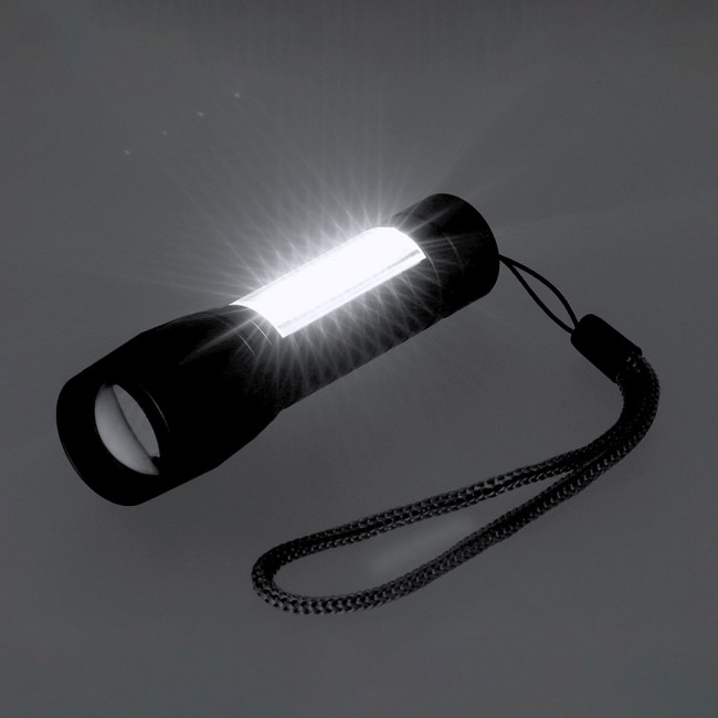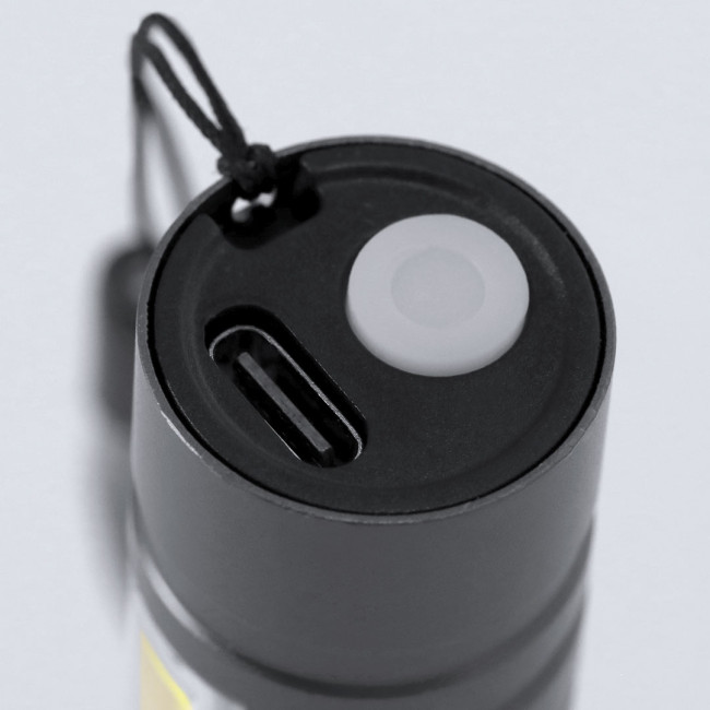 Torcia potente con batteria ricaricabile, realizzata in alluminio opaco. Luce frontale con 8 LED e zoom regolabile. Inoltre, dispone di 10 luci COB sulla maniglia e tre modalità di illuminazione (fissa, lampeggiante e laterale), inclusa la cintura di trasporto. È alimentata da una batteria ricaricabile da 400 mAh, incluso il cavo Type-C.