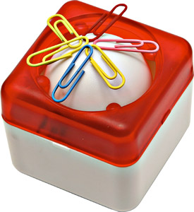 Dispenser per clip con pallina calamitata rotante in colore rosso