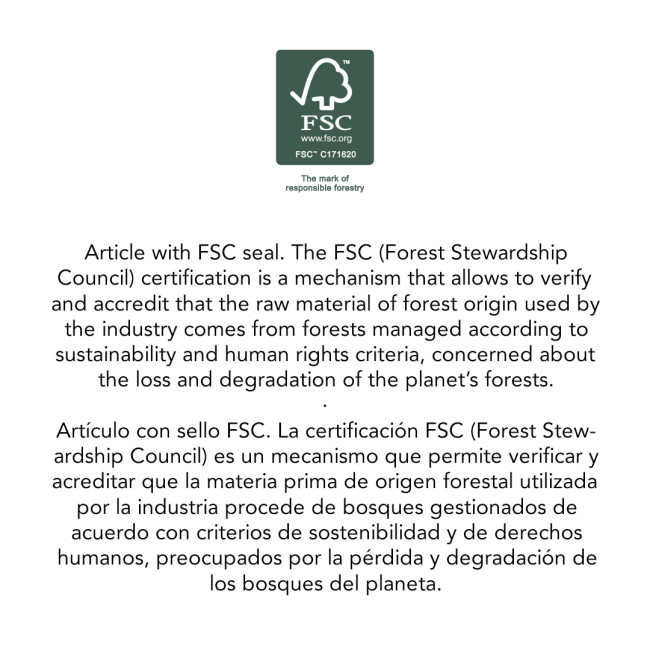 Power bank della linea natura con capacità di 10.000 mAh. Include un caricatore wireless da 5W, adatto a tutti i dispositivi compatibili con la ricarica wireless, e un pannello di ricarica solare. Realizzato in bambù proveniente da foreste sostenibili con certificazione FSC®. Dispone di 2 uscite USB, 1 ingresso Micro USB e un ingresso Type-C. Cavo di ricarica micro USB incluso. Con indicatore dello stato di carica. Confezionato in un'attraente scatola eco-design. Etichetta FSC® sul prodotto. Le capacità indicate su tutti nostri power bank sono reali, incorporando tutte batterie di grado A e non riciclate, con una durata di vita di almeno 500 cicli di carica e secondo le norme CE. Inoltre, sono fabbricati secondo gli standard RoHS e in conformità con i seguenti requisiti di sicurezza: Sistema di protezione da sovraccarico della banca di energia. Sistema di protezione di scarico completo per una maggiore durata del power bank. Sistema di blocco per prevenire i cortocircuiti. Sistema di trasferimento di carica costante, secondo la capacità del dispositivo di destinazione.