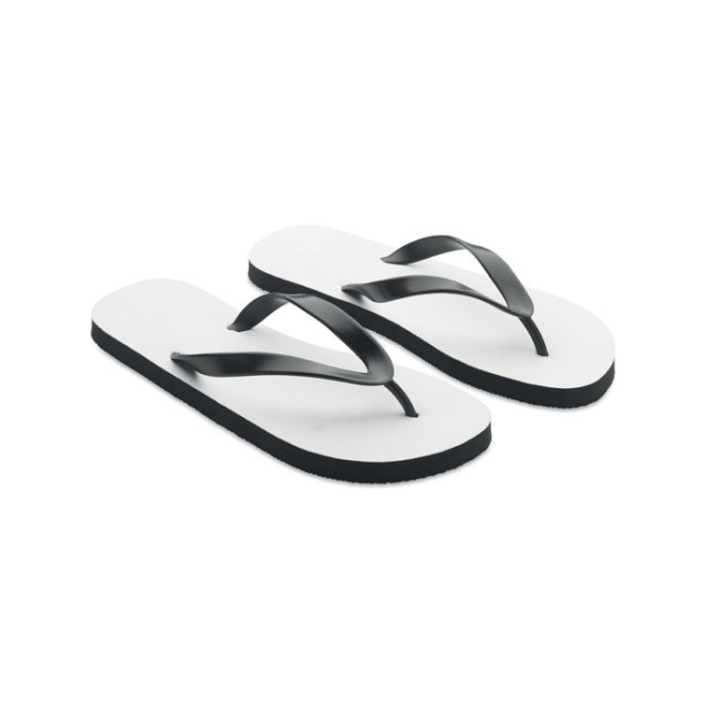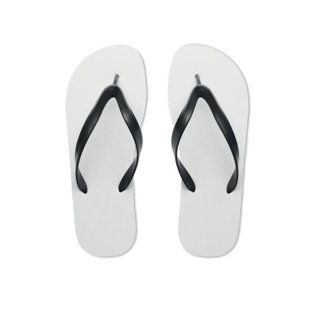 Queste comode infradito da spiaggia adatte per la sublimazione hanno il cinturino in PVC. La suola è in gomma con rivestimento superiore in poliestere. Calzature perfette durante le calde giornate estive o quando sono previste attività acquatiche. La taglia 38-41. L'articolo può essere ordinato solo stampato.