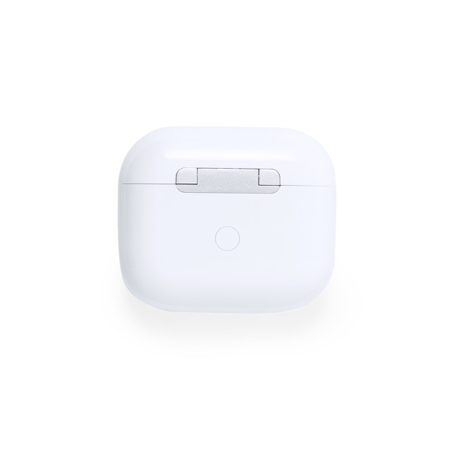 Cuffie in-ear con connessione Bluetooth® 5.3 e funzione vivavoce. Design ergonomico, con pulsante di controllo a sfioramento integrato nell'auricolare e base di ricarica abbinata. Batteria incorporata da 300 mAh e confezione individuale con design kraft. Manuale di istruzioni in inglese e spagnolo.