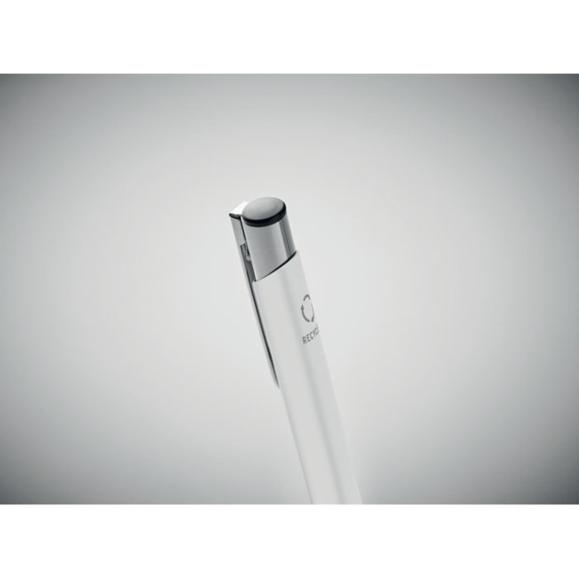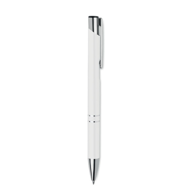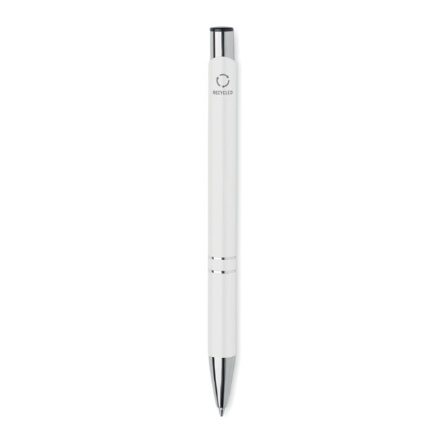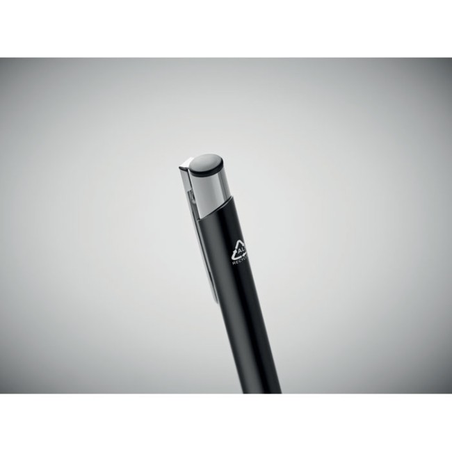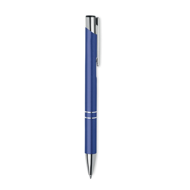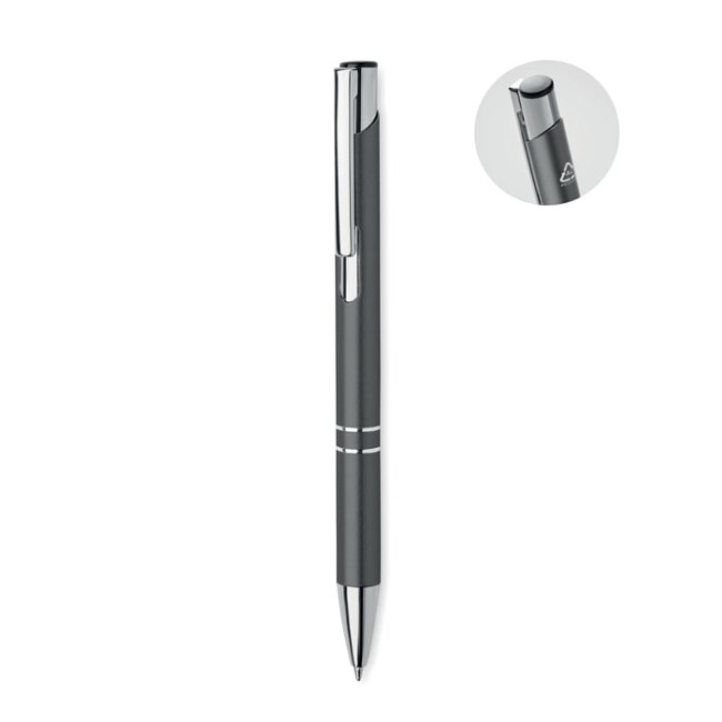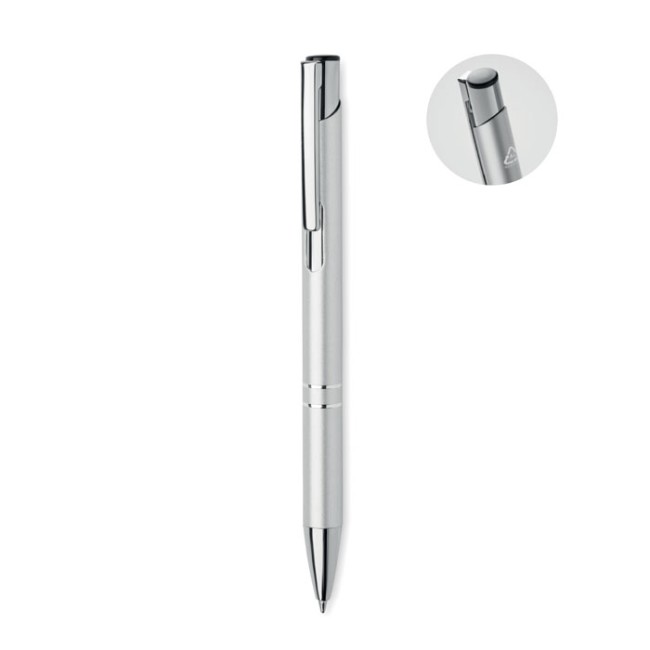 Penna a sfera a pulsante in alluminio riciclato. Inchiostro blu. Un design classico e semplice per l'ufficio. Il fusto in alluminio conferisce un aspetto più premium.
