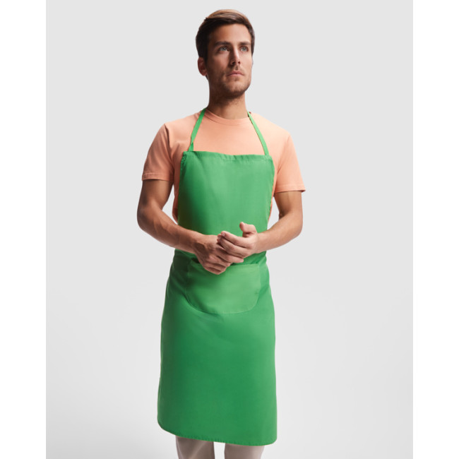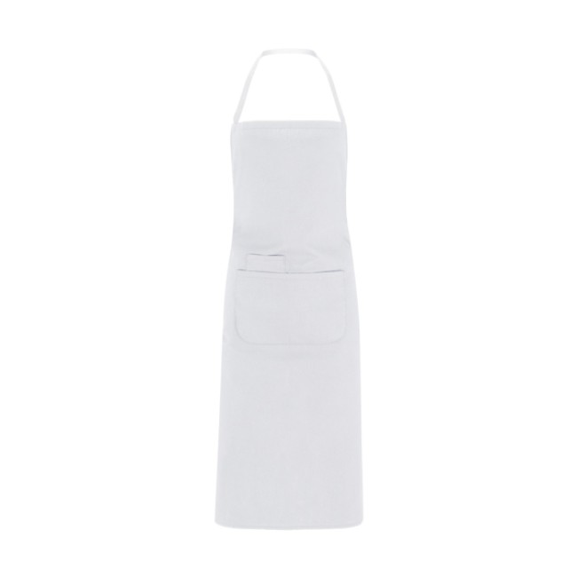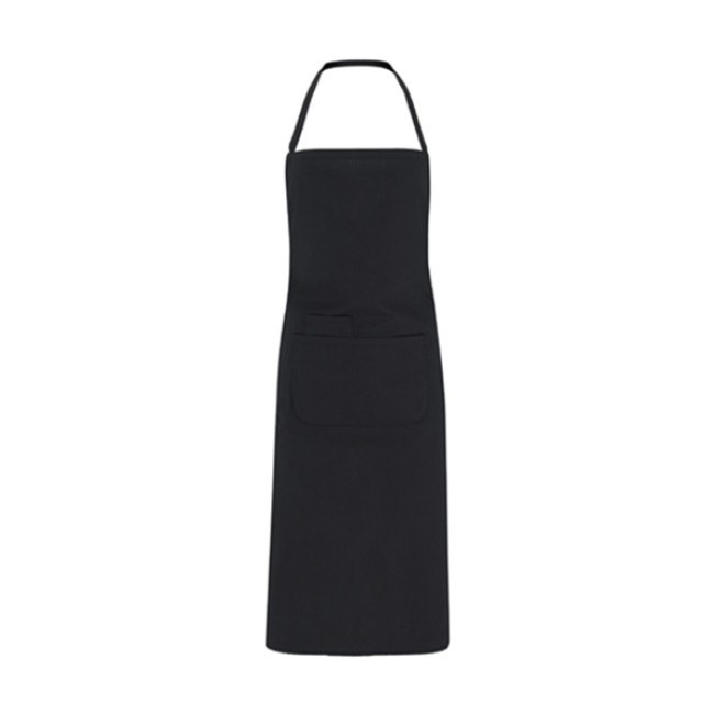 Grembiule lungo:· Nastro in tinta sul collo.· Nastri laterali per allacciatura.· Due tasche frontali, uno interna e una grande sovrapposto.