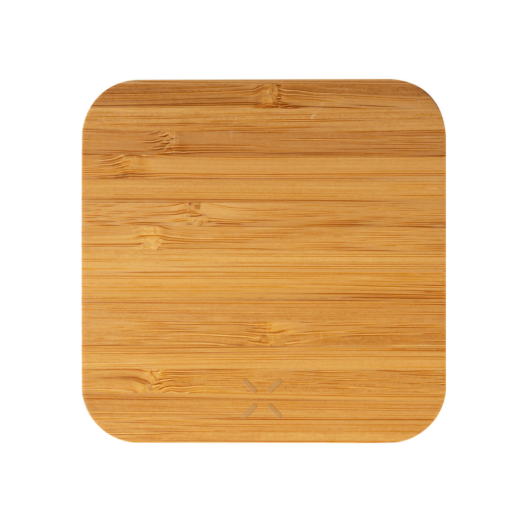 Caricatore di linea wireless Nature. Guscio di bambù dai tagli naturali. con doppia uscita USB da 2.100 mA per la ricarica simultanea di un massimo di 3 dispositivi (1 tramite ricarica wireless e 2 via cavo). Con base antiscivolo e compatibile con dispositivi dotati di tecnologia di ricarica wireless. Presentato in un'attraente scatola di design ecologico.