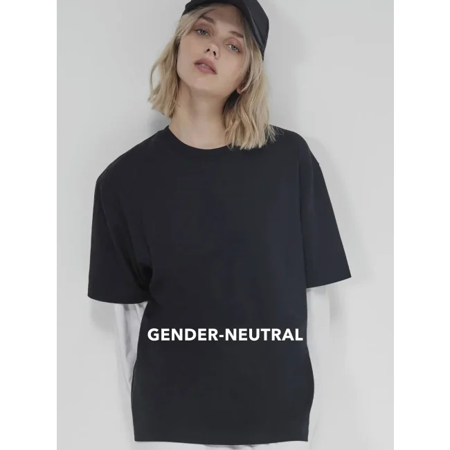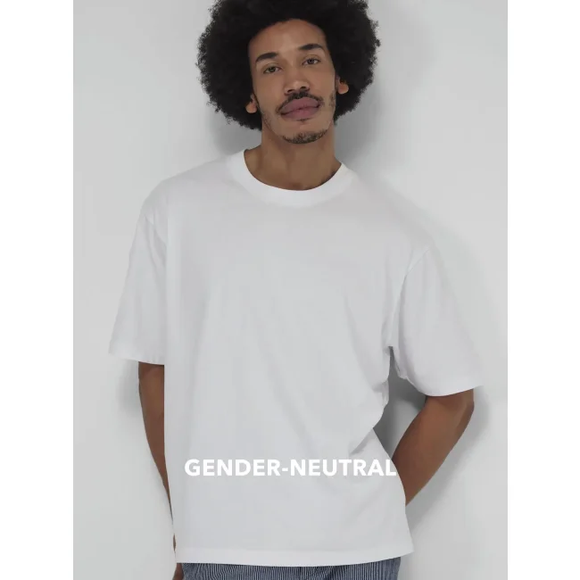 La t-shirt #E220 Oversized è realizzata in 100% cotone, con un design gender-neutral e girocollo. Le spalle scese e le cuciture laterali offrono un look moderno, mentre la robustezza del tessuto garantisce durabilità. Senza etichette per un comfort ottimale.