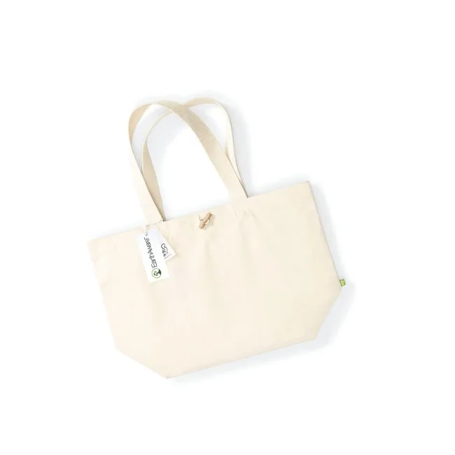100% cotone organico canvas. Shopper in tessuto pesante premium, chiusura con alamaro, manici in cotone. Etichetta removibile. Lunghezza manico - 60 cm. Dimensioni: 34x34x17 cm, capacità: 20L, area di stampa: 46x20 cm.
