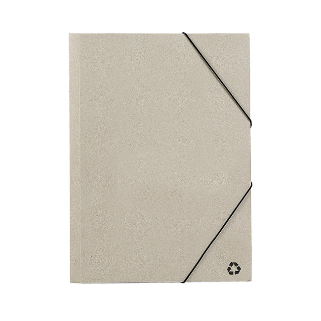 Cartella portadocumenti ecologica di grande capacità con chiusura elastica, in cartone riciclato flessibile e con sistema tri-fold.