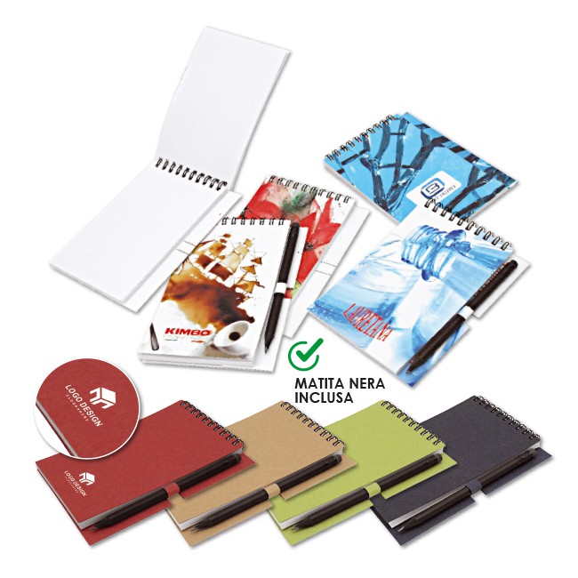 Notes spiralati da 80 pagine con copertina in cartoncino prodotto con fibre dic arta riciclata al 100% e tinto in pasta con colori naturali.