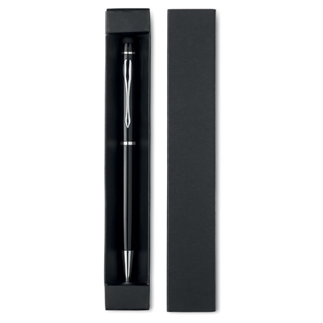 Penna a sfera twist in alluminio con punta touch screen. Refill blue. Confezione in cartoncino.
