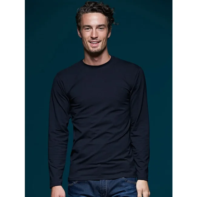 95% cotone, 5% elastane. Shirt aderenti con elastan, Single elastic di facile manutenzione, Cuciture laterali, Scollo rotondo con bordino stretto, Tessuto esterno (200 g/m²). Manica lunga, Slimfit